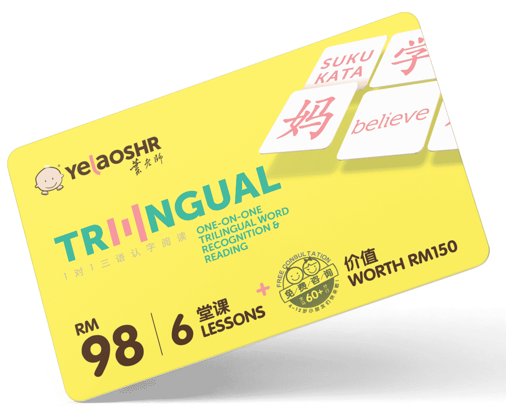 YelaoShr® advocates for a relaxed and pressure-free teaching approach in its Malay pronunciation, reading, and comprehension enlightenment class, aiming to cultivate children’s interest in learning Malay and English from a young age and to master: